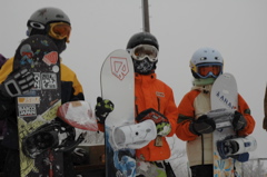 | 久野さん(左)→F/S360をビールの誘惑にも負けず頑張っていました!三浦さん→来年はグルグル回る姿が見れるはず! | 宮下さん&岩田さん&森さん→3回位ポーズが決まらず撮りなおししました〜3人ともBOX&RAIL上手でしたね。 |
